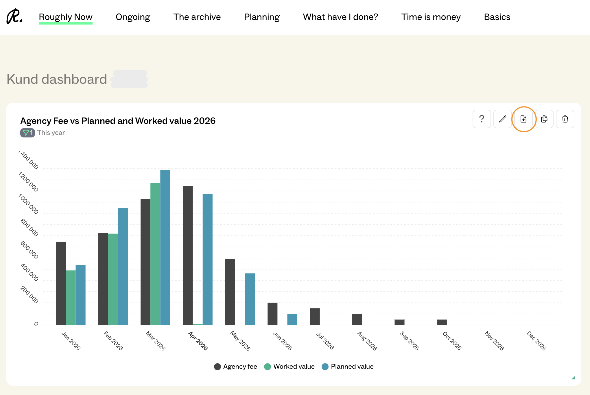 To download a dashboard: Go to RoughlyNow → Go to the relevant dashboard → Select the download icon in the upper right corner.