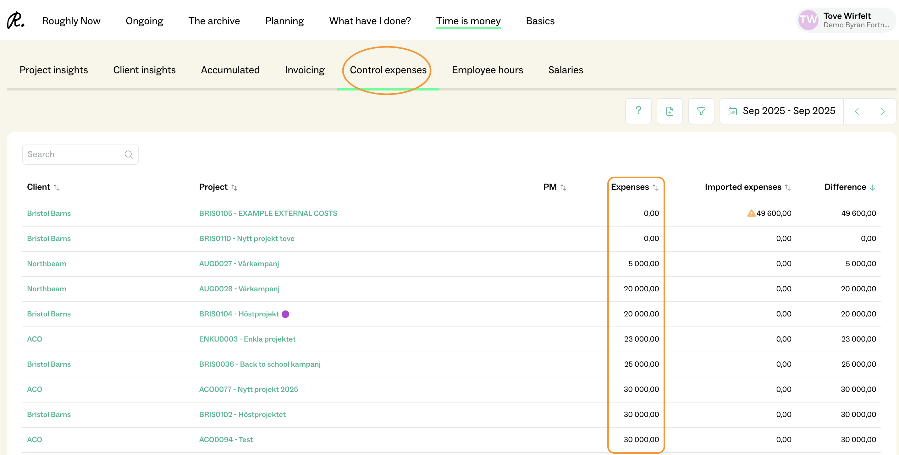 If there are "planned invoices" marked as sent in Roughly Right, but there is no real invoice in Fortnox. You can easily find these under Ongoing > Invoicing.
