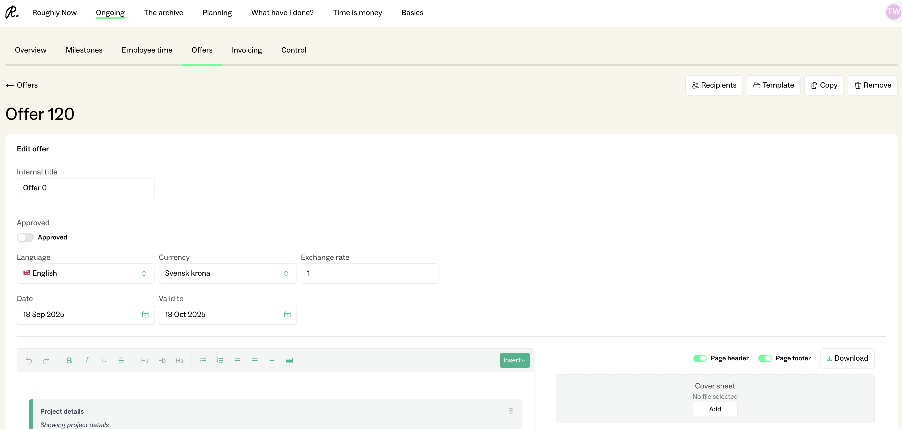 What: Offers can be created in the project home under Offers.